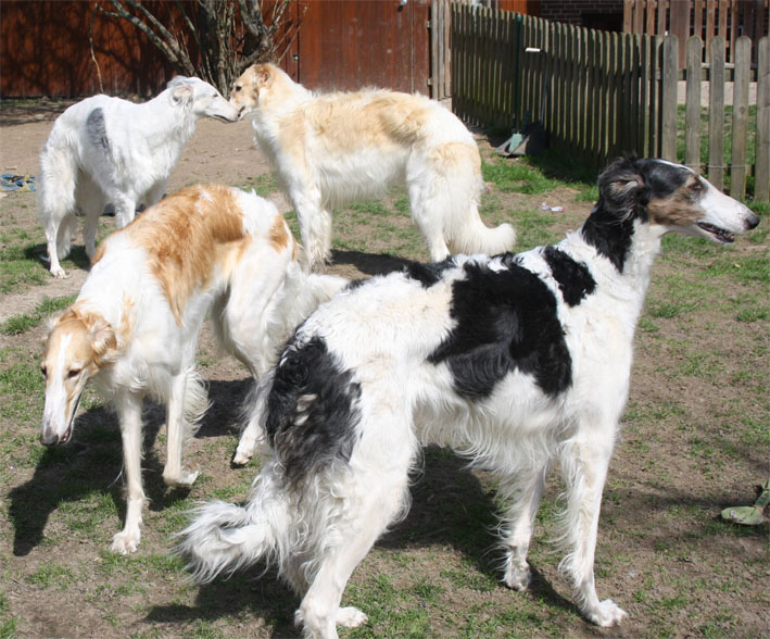 Barsois genießen das schöne Wetter in unserem Garten.