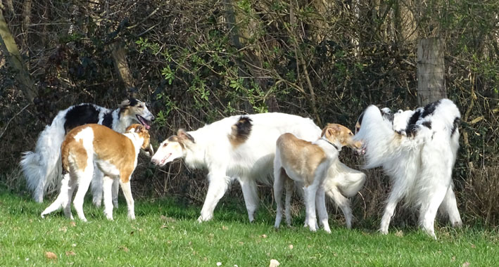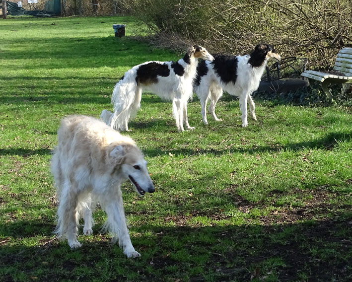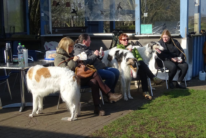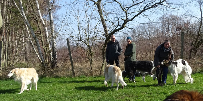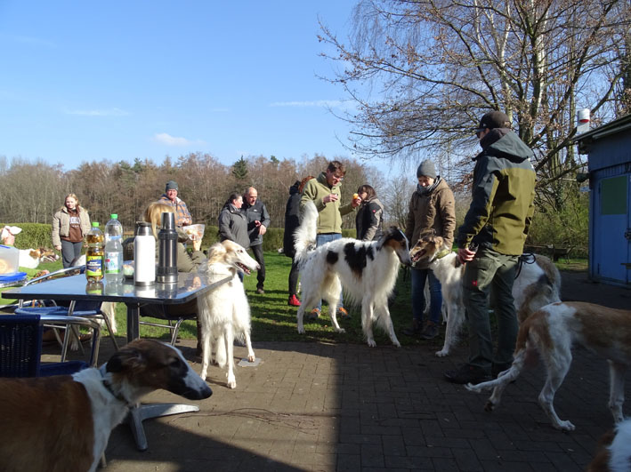Einige Ischyma Barsois und Freunde treffen sich auf dem Gelände des