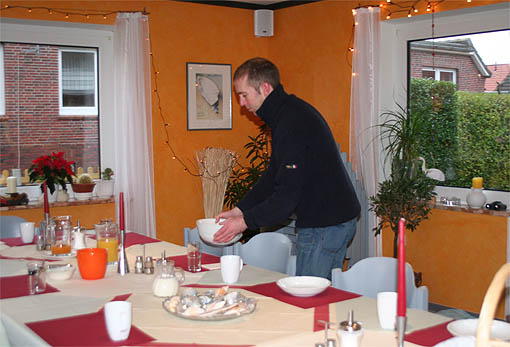 Jens bereitet den Tisch für das erste Essen vor