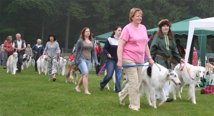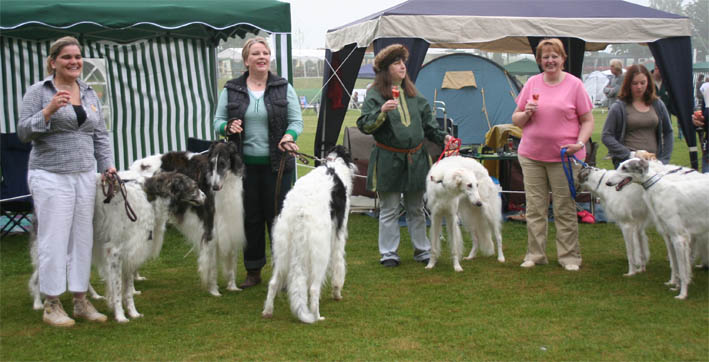 borzois meet in front of showground, to enter the show all together