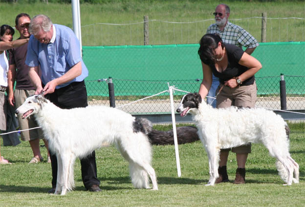 Fahion and Dorle in the competition for the best borzoihead bitches in show